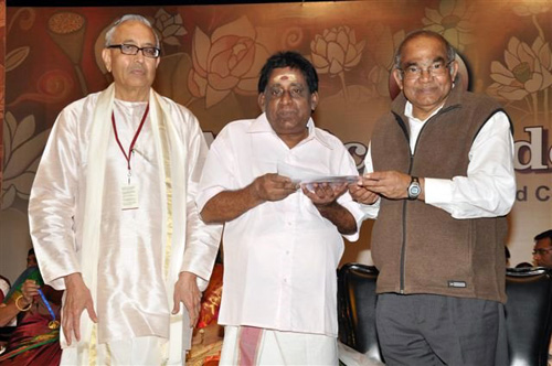 S.R.Mahadevasarma receiving 'KALAASRI' award by Kerala Sangeetha Nataka Academy from Chief Secretay of Kerala Vijayanandh IAS -